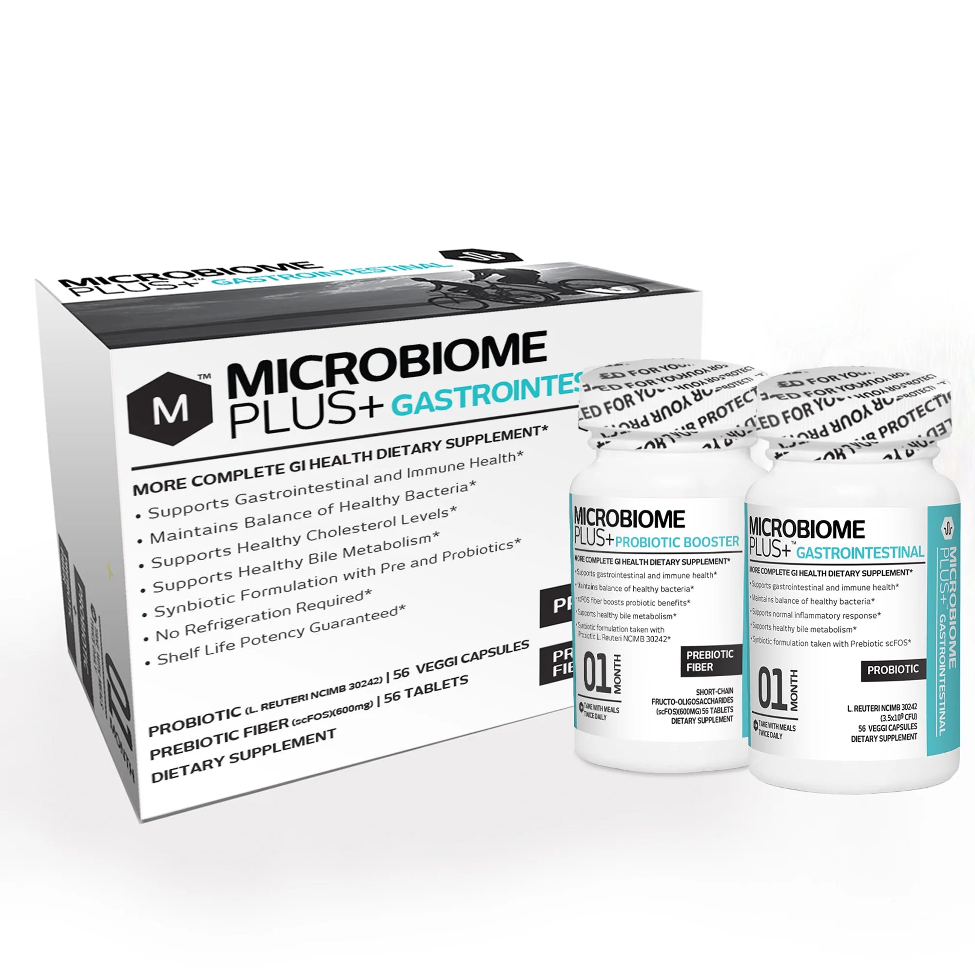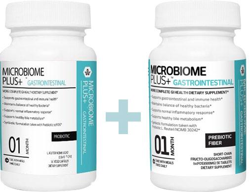 Microbiome Plus+ Gastrointestinal is a more complete gastrointestinal health dietary supplement that provides natural prebiotic fiber (scFOS) and the probiotic L. reuteri NCIMB 30242 which work together to maintain the balance of healthy bacteria in your gut and support normal digestive function.*