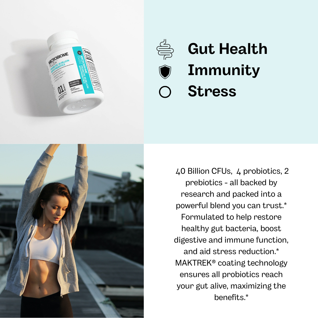 About Microbiome Plus+ 40 Billion CFU Probiotic with Prebiotics