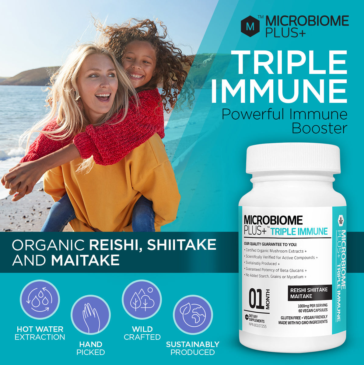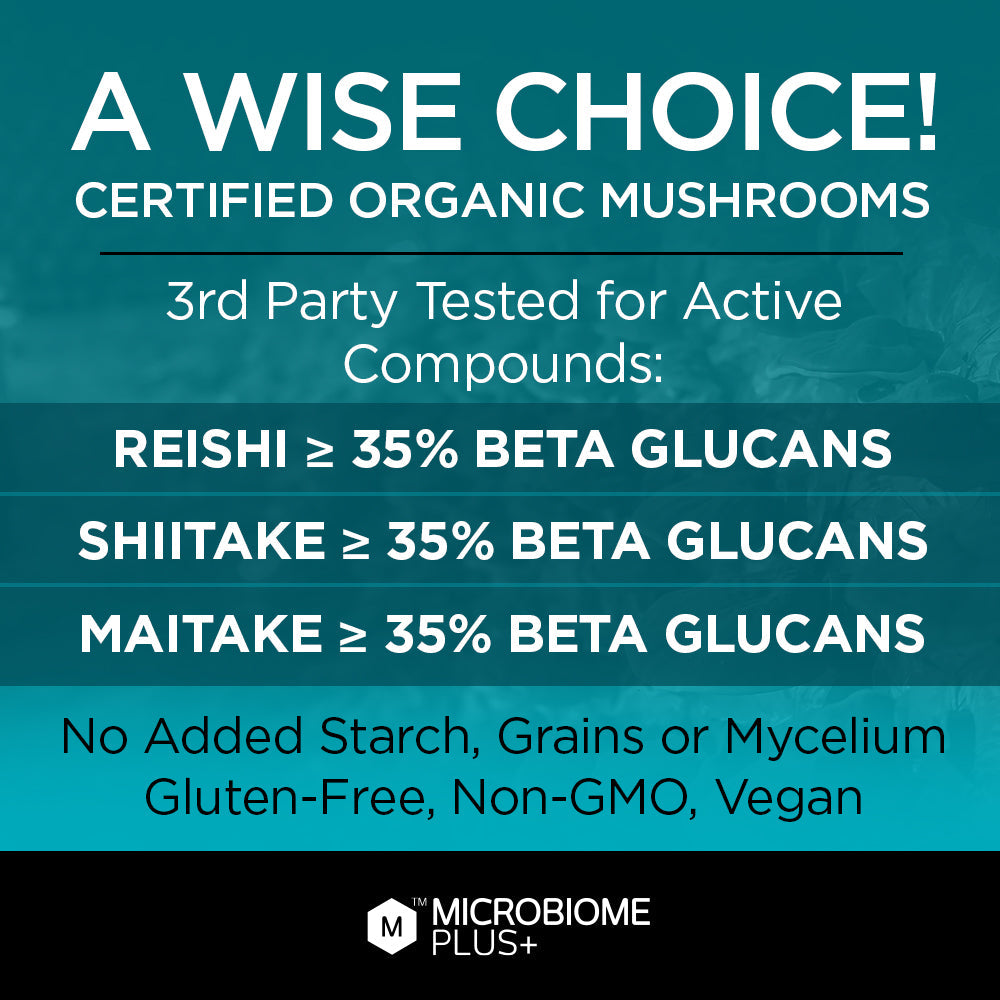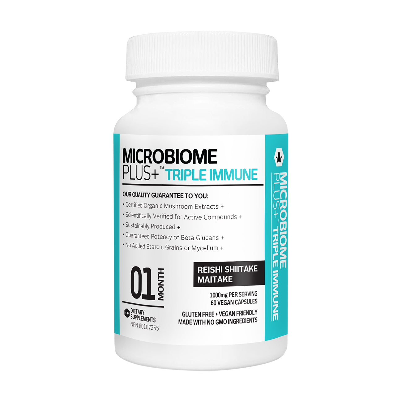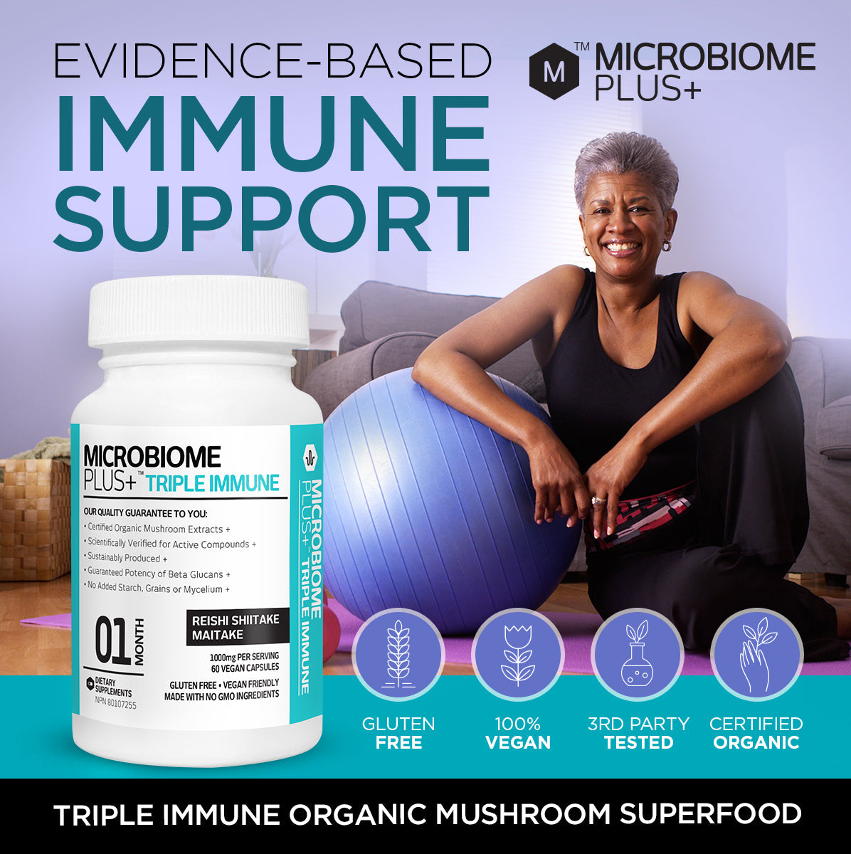 Triple Immune from Microbiome Plus+ contains the highest level of immune-supportive beta-glucans from any mushroom product on the market. Beta-glucans are the most important immune-balancing compounds in medicinal mushrooms.†